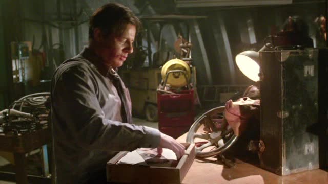 At some point, however, Art started to become nervous when he saw the mechanism above Eric's head. This mechanism was connected to two large ice blocks attached to mechanical arms suspended from the ceiling. When he saw the chain which connected the mechanism with the door of the room, Art realized that the ice blocks would swing down and therefore crush Eric's head if the door was opened before a 90-minute timer went off. Therefore they had to prevent Rigg, who was on his way to the plant already, from entering the room before the clock expired.