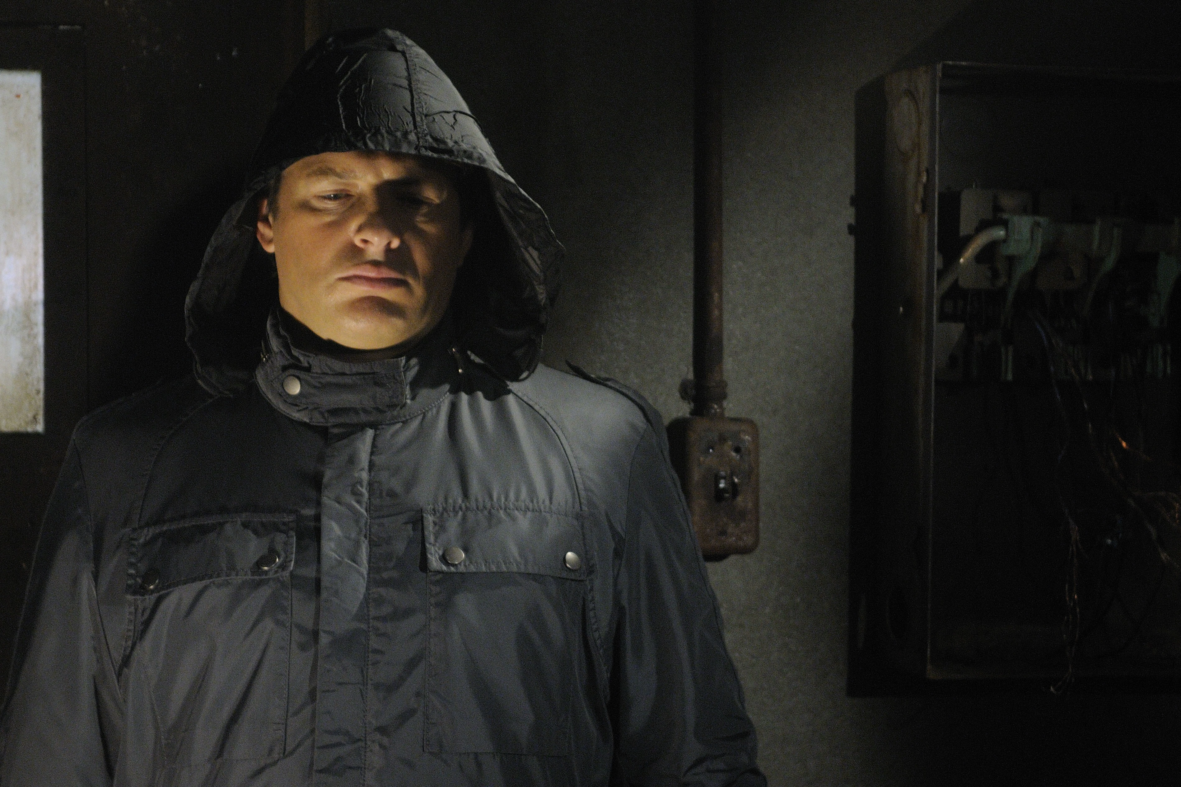 On one occasion, he went to the abandoned Crossroads Manufactory, which was a known shelter for addicts and homeless people, due to an emergency call. At approximately the same time, another young patrol cop, Matt Gibson, arrived at the manufactory as well. While Gibson entered the run-down building with his gun at the ready, he was suddenly attacked and knocked down with a bottle from behind by a man. Gibson tried to fight the man off but had to surrender when the man grabbed his weapon and held him at gunpoint. However, before the man could shoot him, Mark Hoffman suddenly appeared behind him and told him to drop the weapon. Even though the unknown attacker obeyed immediately, Hoffman shot him in the back three times, killing him in the process. After that, he gave Gibson, who was shocked by the events, a leg-up and advised him that next time, he should shoot first. Before departing, he told Gibson that he owed him.