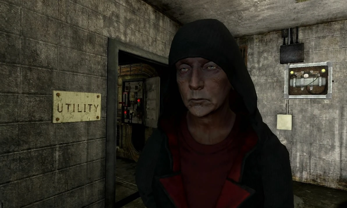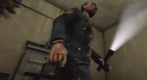 Following his escape, Michael went on and thereby came across a large hole in the floor. As he jumped down into the room below, he encountered Henry, who had somehow obtained a gun and shot at him without a warning. Michael quickly took cover, while Henry shot at him again and again. As he did, he tried to justify his betrayal by claiming that he had no other choice. With no other choice but moving forward, Michael carefully ran from cover to cover, while avoiding the gunshots. As he got closer and closer, Henry eventually decided to flee. Once he was alone, Michael looked around and found another panel with glowing buttons, similar to the one from Henry's trap. By solving the next riddle and deactivating all the lights, Michael finally shut off the power and went on to the next elevator. (Saw II: Flesh & Blood)