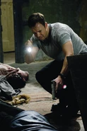 Initially reluctant to become involved in the investigation, Eric quickly manages to locate Jigsaw's hideout at the abandoned Wilson Steel Plant and joins Kerry and Sergeant Daniel Rigg as they raid the plant with a SWAT team. They find the killer, John Kramer, severely weakened by his cancer disease. However, as the officers are about to arrest him, John reveals that he has already planned his apprehension and shows them a set of surveillance monitors. On these monitors, Eric and the others witness eight people, including Daniel Matthews, Eric's son, and Amanda Young, the only known survivor of one of John's games, who are all trapped inside a big house. While trapped there, they breathe in a deadly nerve agent and have two hours to find syringes with the antidote hidden all around the house. John assures Eric that he will see his son again in a "safe and secure state" if he agrees to talk with him alone until the two hours are over. Pressured by Kerry, Eric reluctantly agrees to John's ultimatum to buy time for a tech team to arrive and track the signal from the video feed.