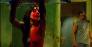 In the house, Xavier returns to the first room where they initially woke up and discovers a colored number on the back of Gus' neck. He realizes that every prisoner has one number of the safe's combination written on their neck. Desperate to get his hands on the antidote, he kills Jonas in a fight and begins to hunt down the others. Meanwhile, Laura collapses and eventually succumbs to the nerve agent. Additionally, Amanda and Addison abandon Daniel after finding a photo of him and Eric. Amanda, however, returns after finding Jonas' corpse. As they try to find a place to hide from Xavier, Addison discovers a room with another antidote locked inside a glass box. However, as she puts her hands through two holes in the box to grab it, her arms are trapped in the razor blade-lined sockets. Moments later, Xavier finds her but leaves her to die after reading her number.