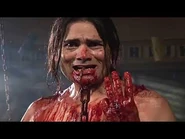 Later, Kerry is abducted from her apartment and wakes up in a trap. She has one minute to retrieve a key from a beaker filled with acid and deactivate the device hooked into her chest. Although she manages to obtain the key in time, her trap has been manipulated, just like Troy's, and subsequently kills her as it tears her rib cage apart.