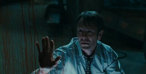 Moments later, a TV in their enclosure turned on, showing a video of John Kramer who told Tara about the sacrifices William had made to save his sister but also reminded her that he had been responsible for the death of her husband. Therefore, it was now up to her to decide whether William should live or die. Shocked by this, William approached her cell and thereby stepped on a pressure plate on the ground, which activated a panel with a lever with the words "Live" above and "Die" below it. Both, William and Pamela desperately begged Tara for mercy and tried to convince her to forgive William, but due to her anger, Tara still wanted to kill him, claiming that it wasn't because of what William had done to her but because she didn't want him to do it to anyone else. However in the end, she couldn't bring herself to pull the lever. Therefore, Brent grabbed the lever and, despite the protests of his mother, pulled it down. Moments later, a large metal construction with needles attached to it swung down from the ceiling and pressed William against the grid of the enclosure. Seconds later, the hydrofluoric acid was pumped through several tubes connected to the nail bed and was thereby injected in William's body. While William was slowly and painfully dissolved by the acid from the inside, Pamela had to watch in horror and began sobbing, suffering an emotional breakdown as her brother died before her eyes. Upon his death, William's molten lower body half collapsed, spilling his entrails on the floor. (Saw VI)